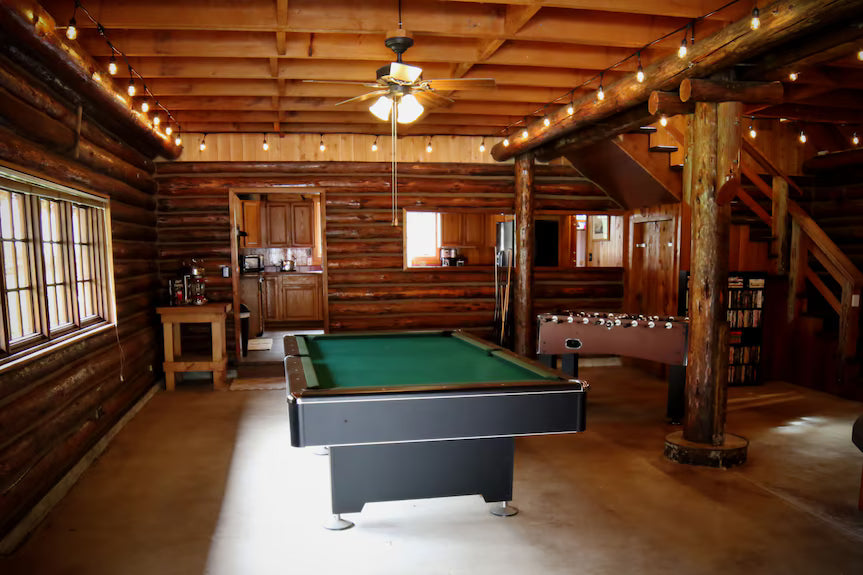 • 4 Rooms / 3 Bathrooms: Bunk Room (4 Twin Beds), Main Cabin (1 King), Main Cabin Guest (1 Queen), 2nd Cabin (1 Queen)